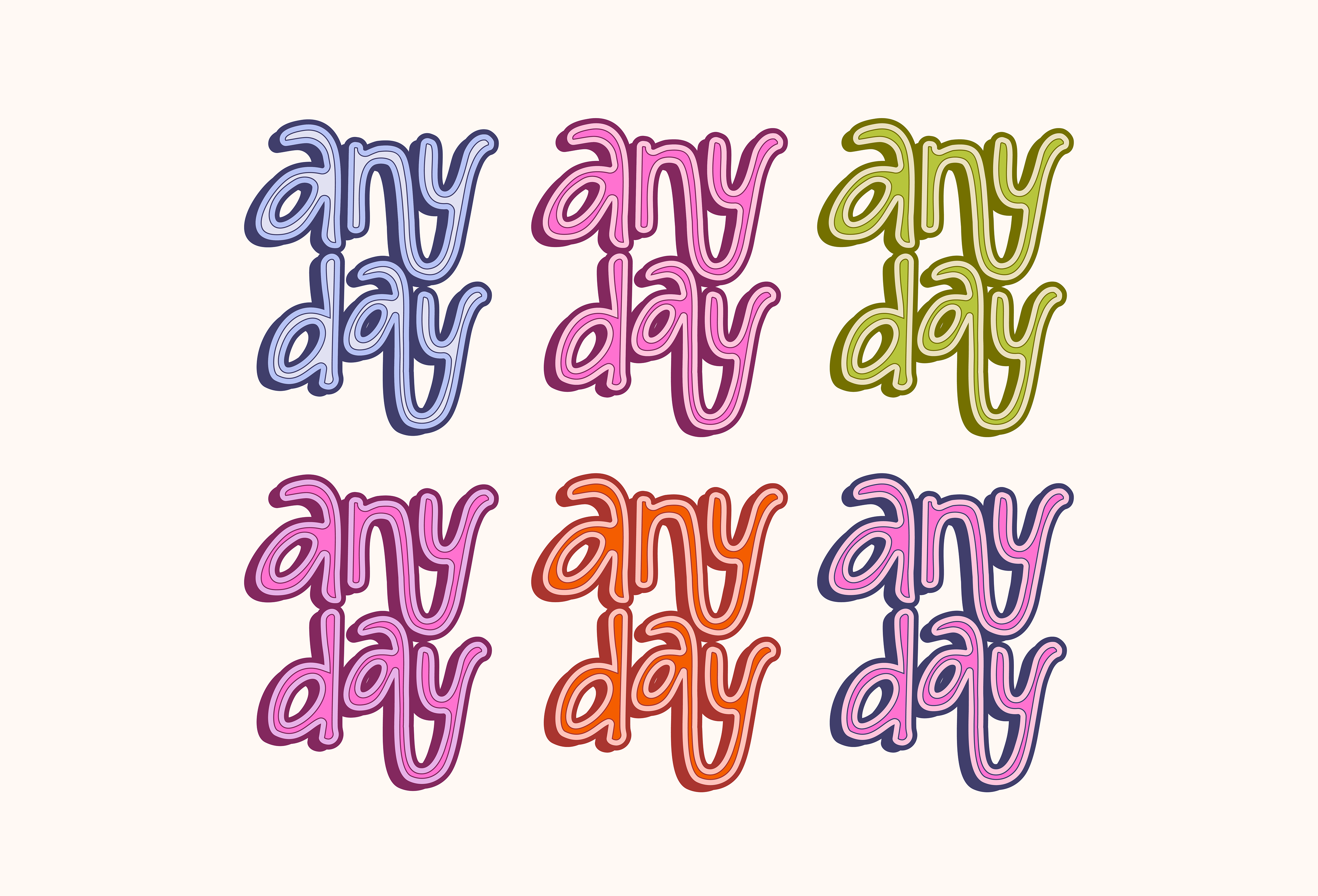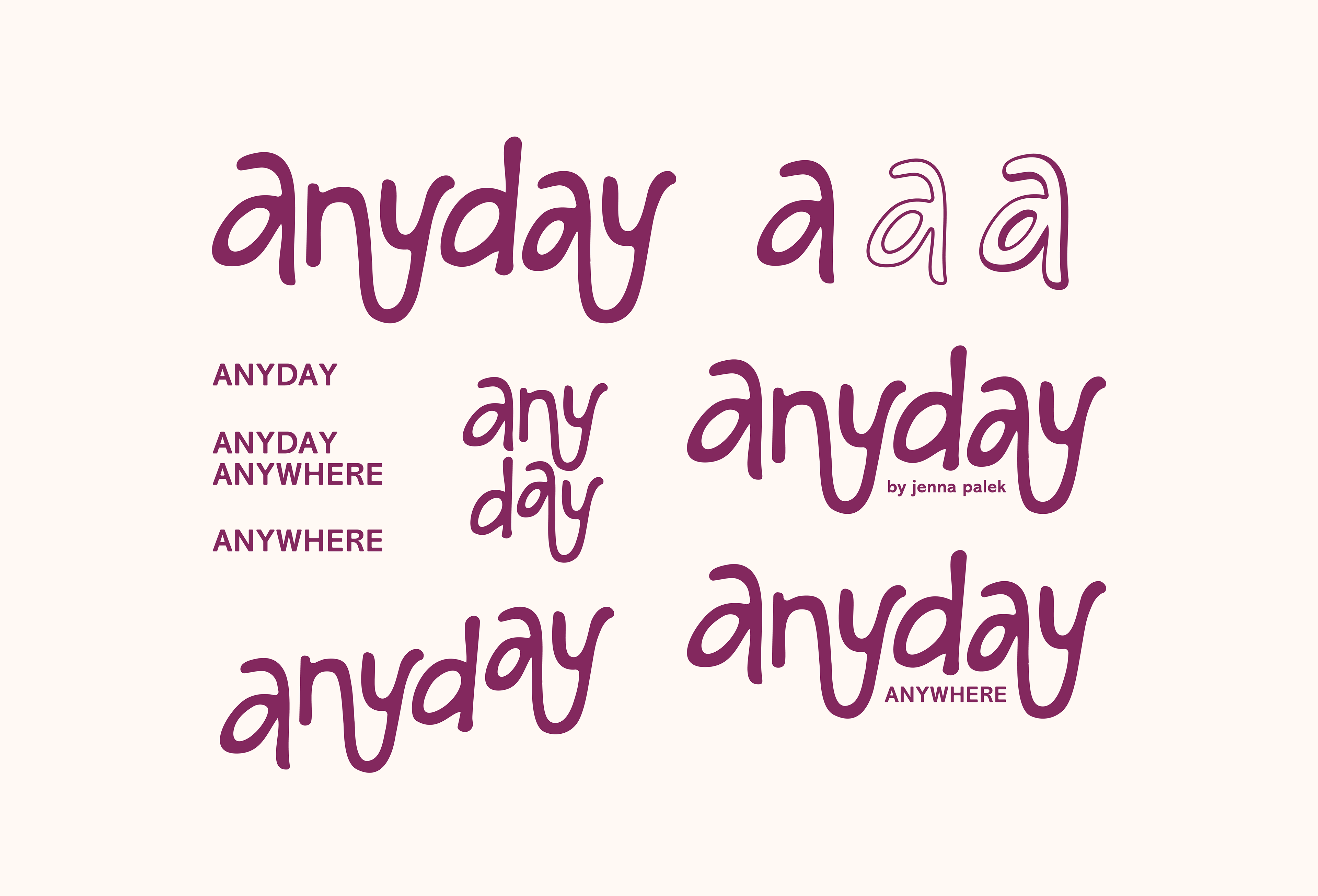 Brand kit & guidelines designed for Anyday, a new fitness app created by Jenna Palek - estimated to roll out Fall 2026. Anyday will have fitness classes like pilates, barre, and more + it will have a ticketing system for Jenna's events around the nation.